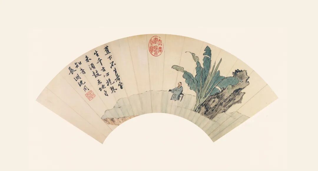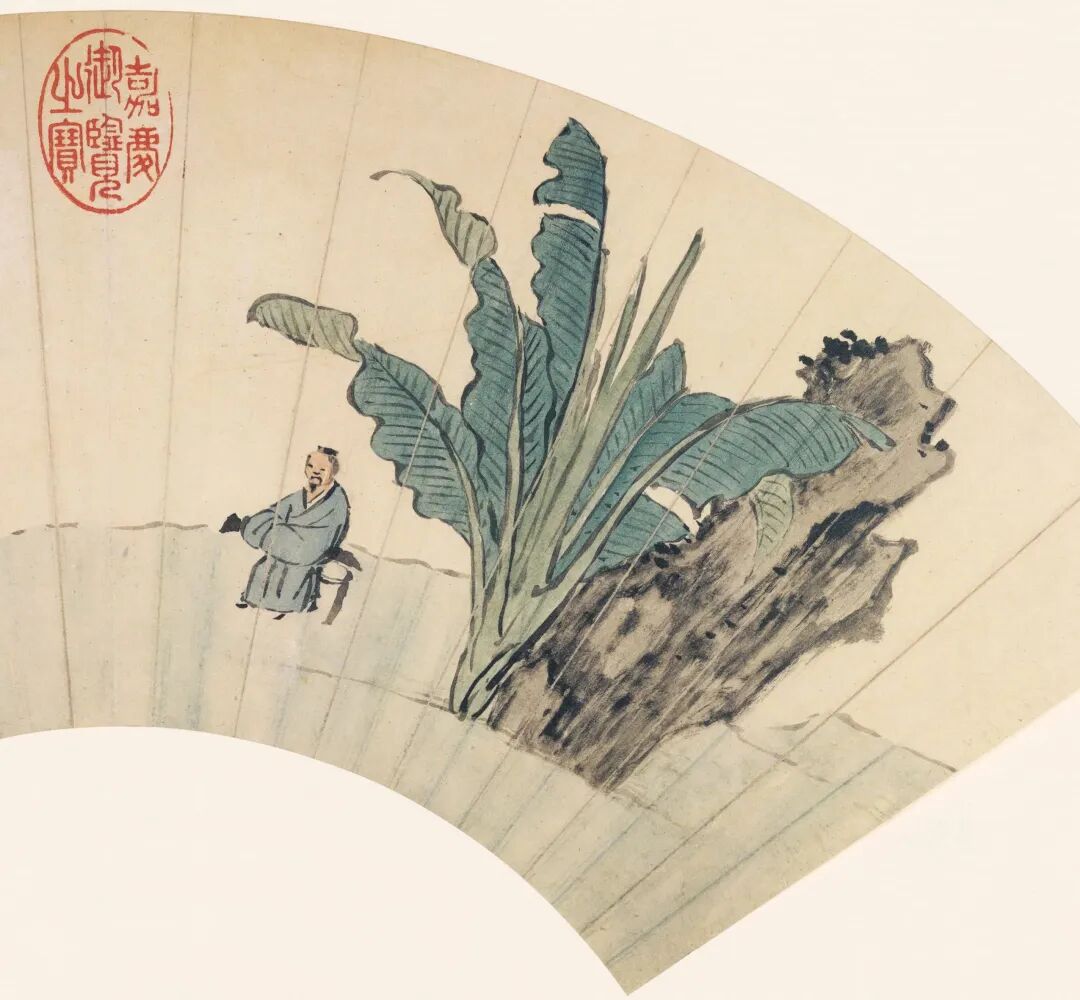 蕉叶象征遮蔽与避世,琴则象征高洁与知音。在这种对比之中,沈周创造出一个精神剧场。人物虽静,却充满戏剧性;景物虽简,却足以托举复杂的情绪。这正是文人画的魅力所在:它不靠细节堆叠,而是靠意境成诗。