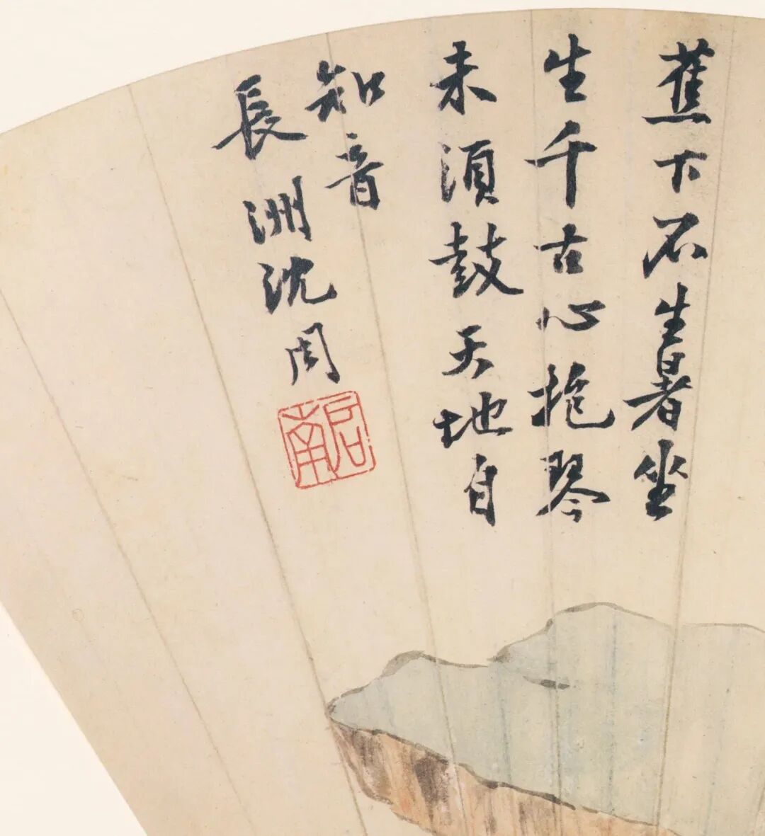 画中题诗“抱琴未须鼓,天地自知音”,更将这份孤独上升为一种“天人合一”的哲思。画中之人无需弹奏,天地便能感知他心中之音。这种心灵与宇宙的默契,是沈周在艺术与哲学上追求的最高境界。