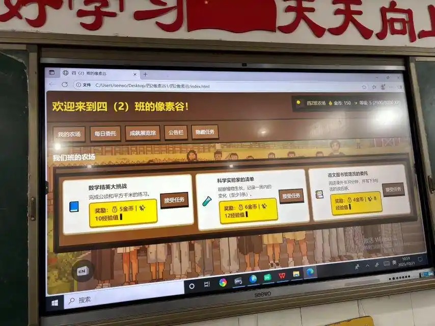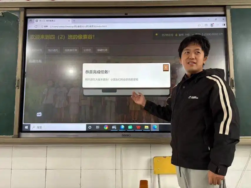 去年9月,他发现,学生喜欢养成类游戏,他利用AI辅助,开发了一款类似于“像素谷”的游戏。“我把四年级上册数学课本整本书的知识点,通过AI帮我分解,然后我把这些知识点的题目全部上传,游戏放到我们班的白板上面,同学们就可以通关完成任务,领取奖励用来施肥、开垦荒地。”